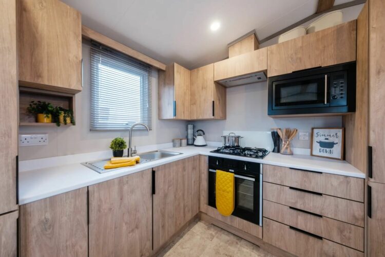 Embrace the comfortable and cosy Stonewood, an affordable haven for families. The large living space, complete with sunset-gazing doors, caters to both tranquil nights and lively days. Bedrooms come with modern open storage, and a fully-equipped, easy-clean bathroom ensures a memorable holiday experience. Call our team on 01503 390004 to arrange a viewing and a park tour.