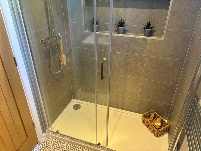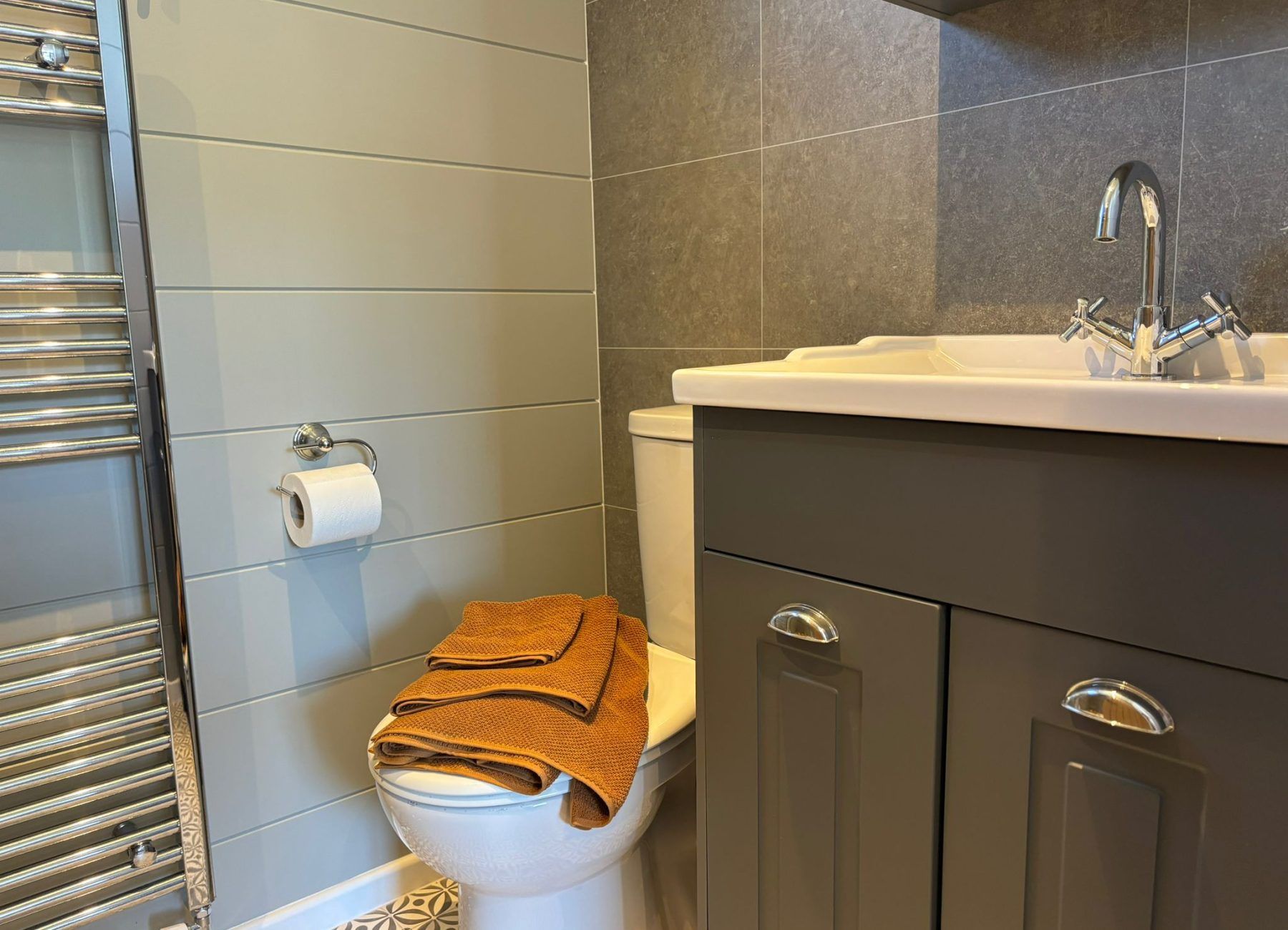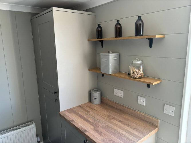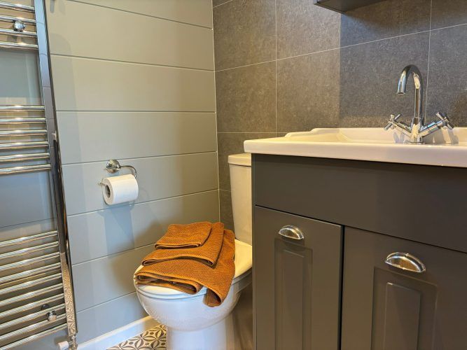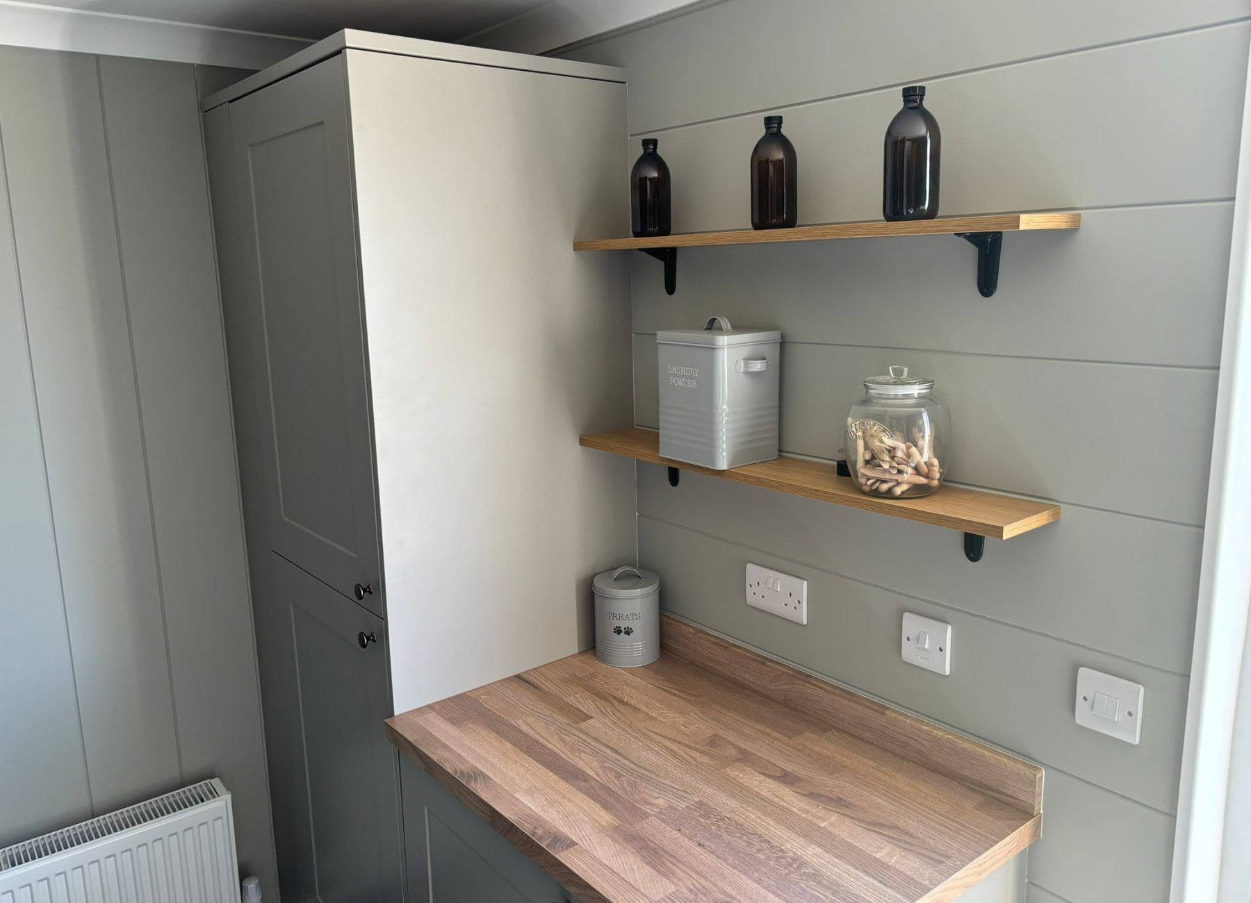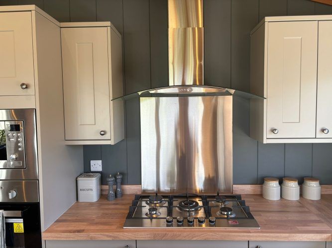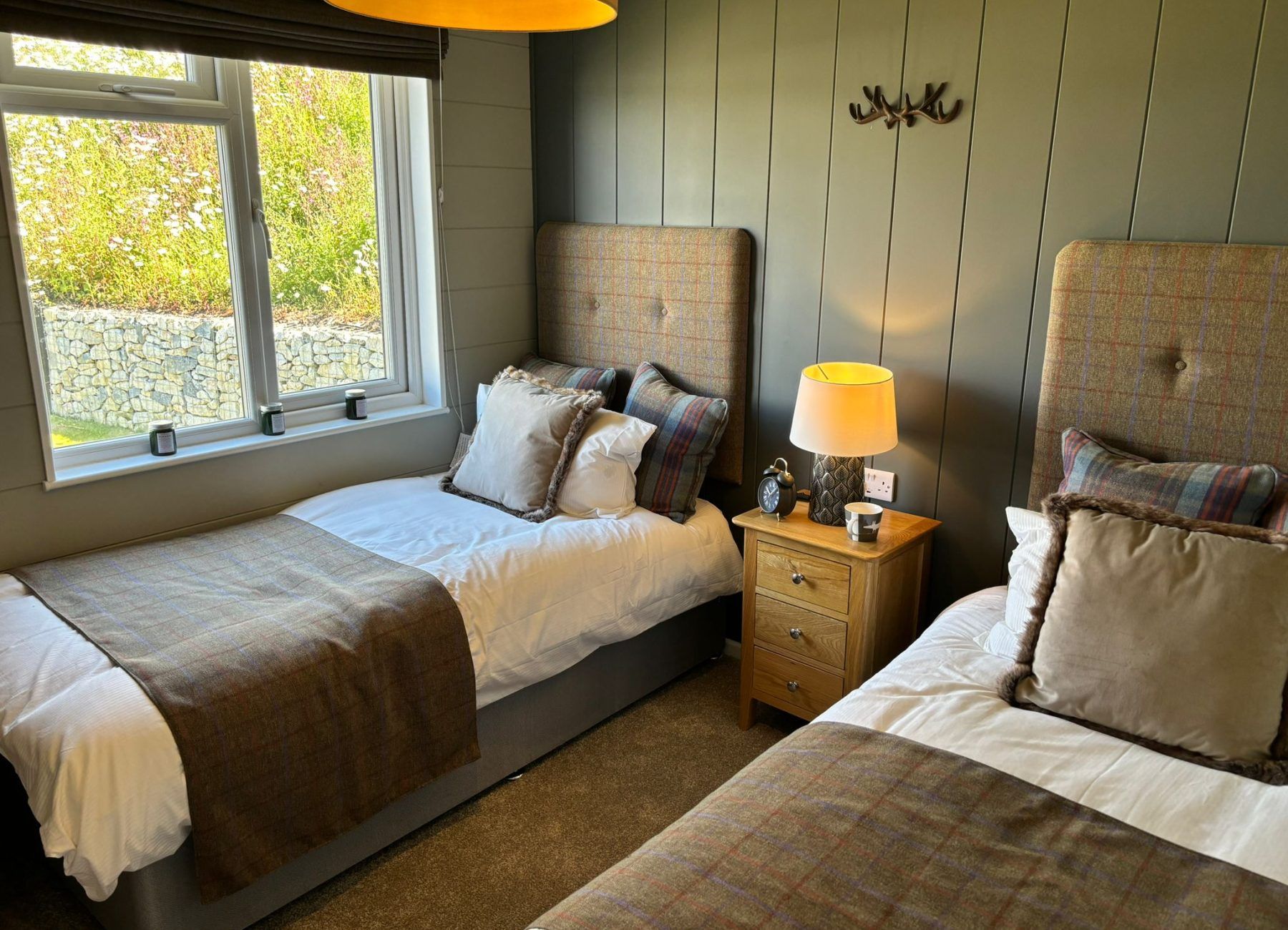 With a vaulted timber ceiling, exposed beams, and a beautiful feature fireplace, it’s easy to imagine returning to this luxury lodge from a long coastal path walk, kicking off your hiking boots, and sinking into the soft and sumptuous sofa, curled up in front of the roaring fire. Practicalities abound too, from the eminently sensible entrance boot room, with its bench seating, ample storage, and tough entrance flooring to the solid oak interior doors and freestanding bedroom furniture. This is truly luxury holiday home living at its best!