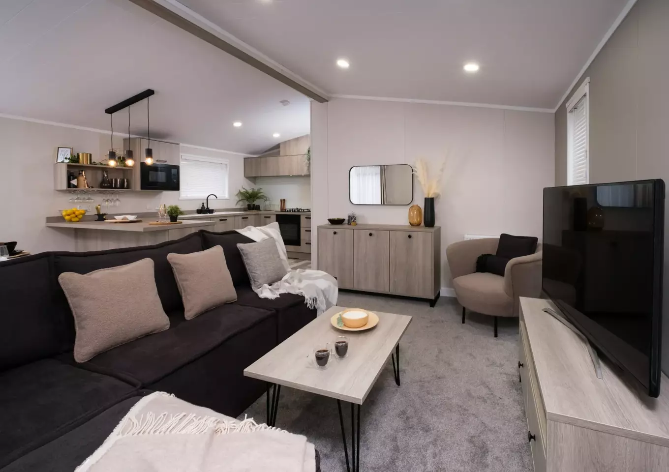 A stunning lodge with sea views (Pitch – Vista 7), the Faraday is cosy and comfortable throughout, you’ll see hints of black accents to give the home a boutique, modern feel.