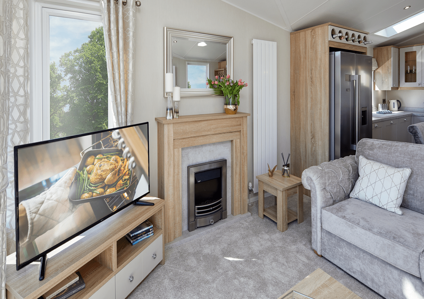 This particular model is beautifully positioned on a prime corner plot and comes complete with spacious decking, a private hot tub, and includes all site fees and rates for the 2025 season.