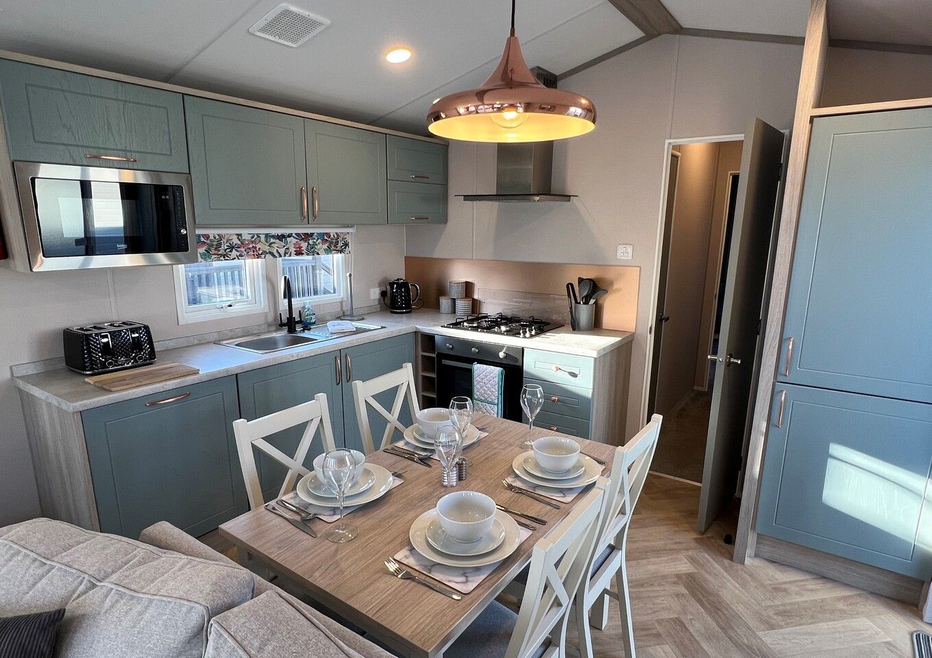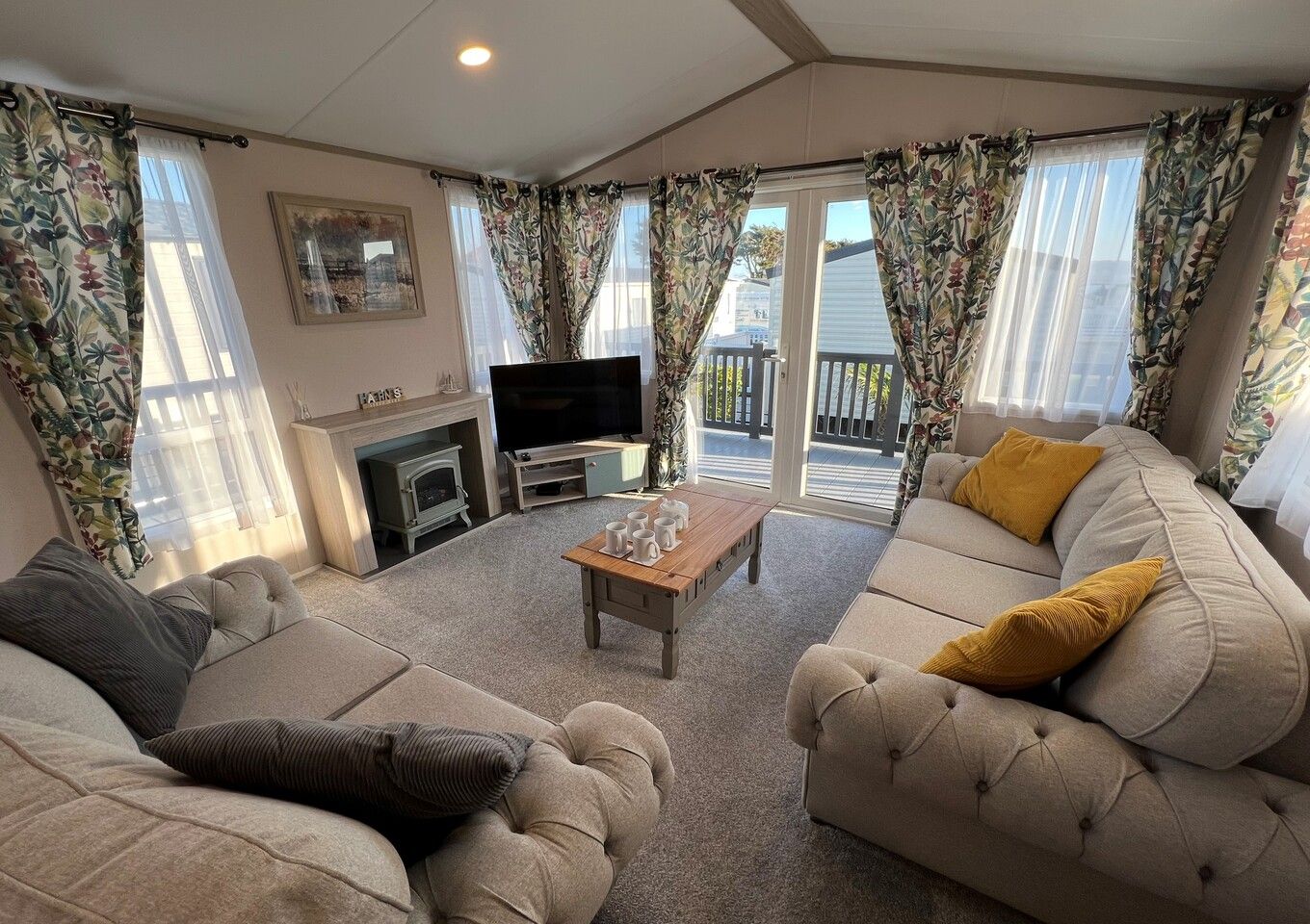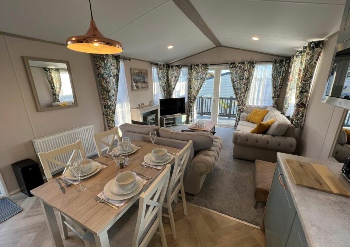 The stunning Atlas Heritage feels exceptionally light and roomy with its 7ft side ceiling height and deep aspect windows. The interior is beautifully finished with two freestanding sofas and feature fire cabinet in the lounge and stunning contrast doors to all cabinets and fittings throughout.