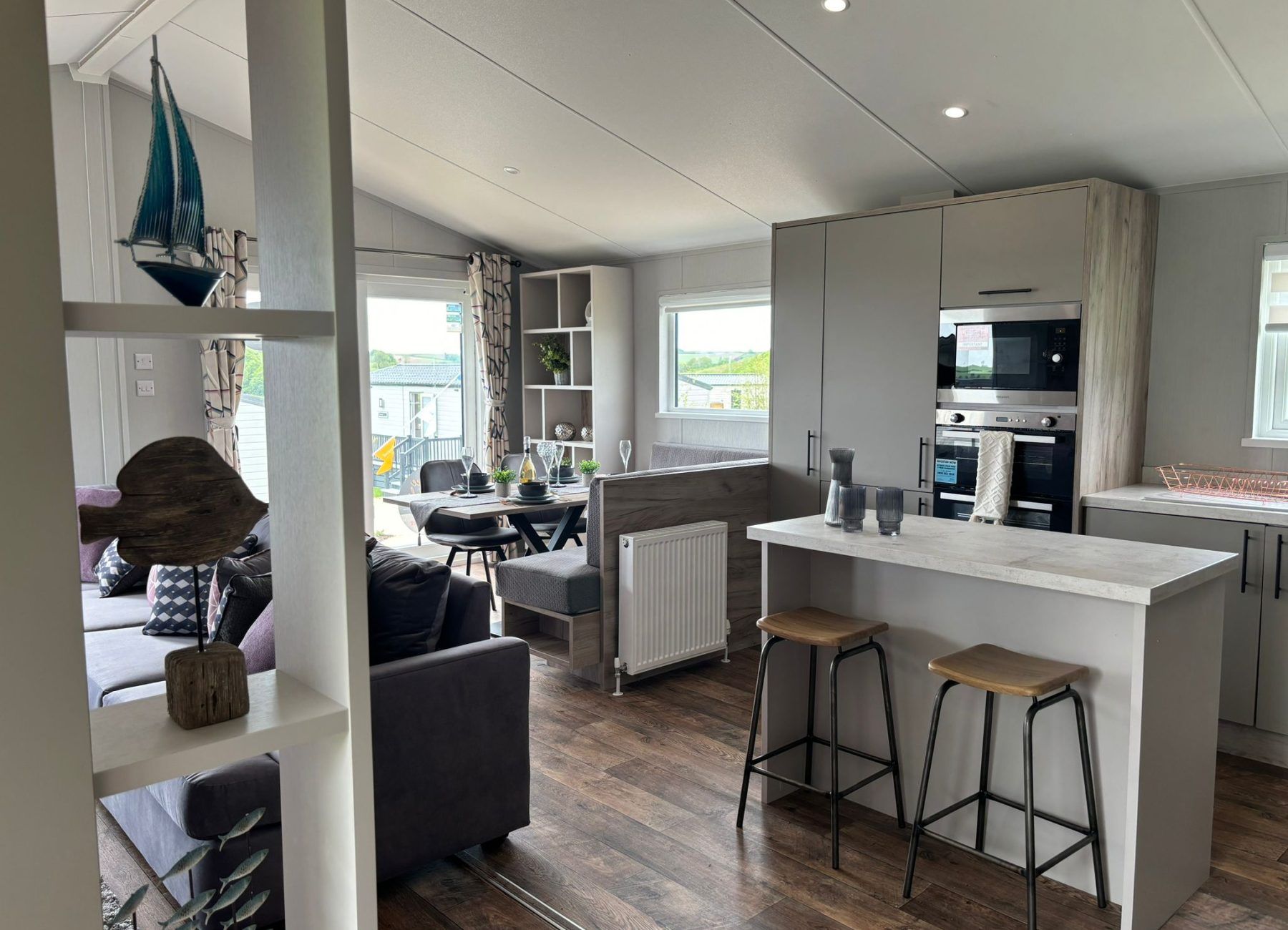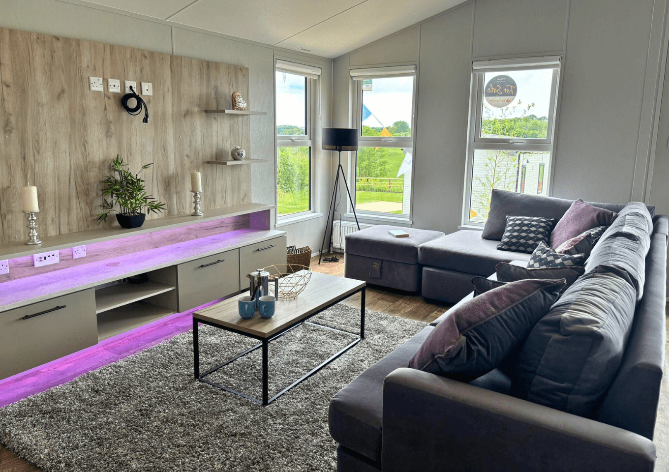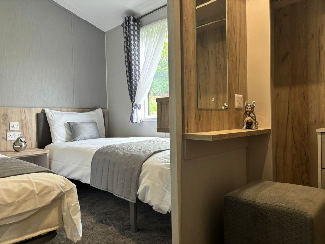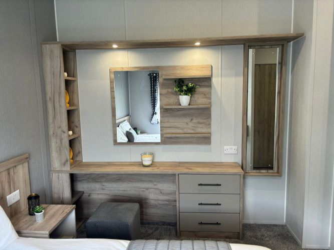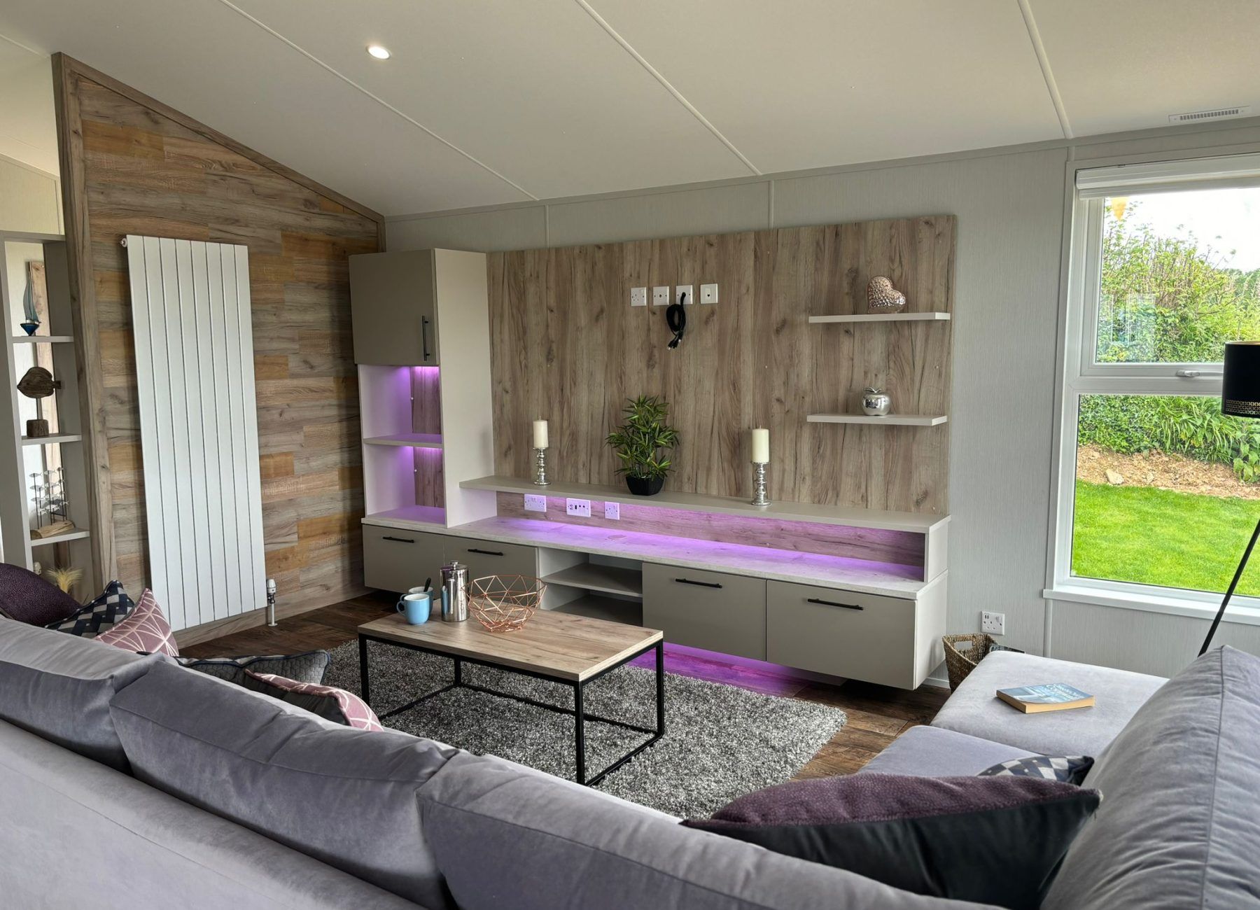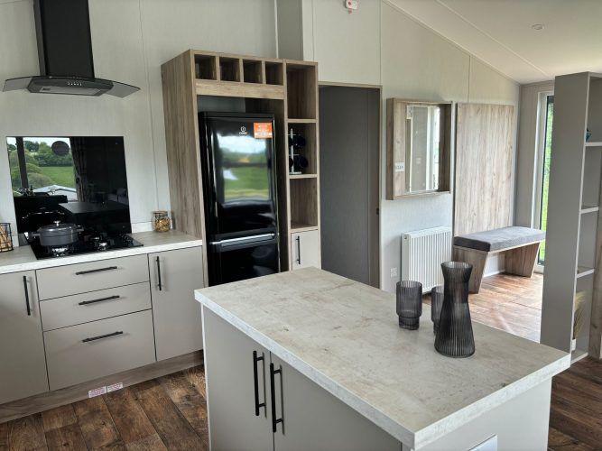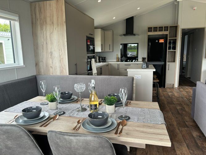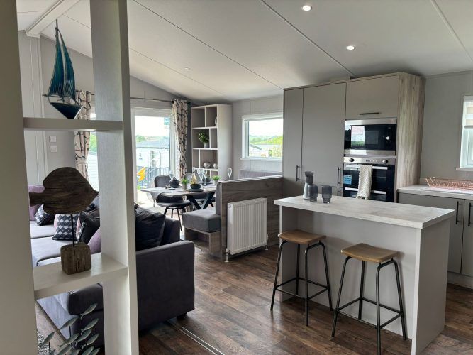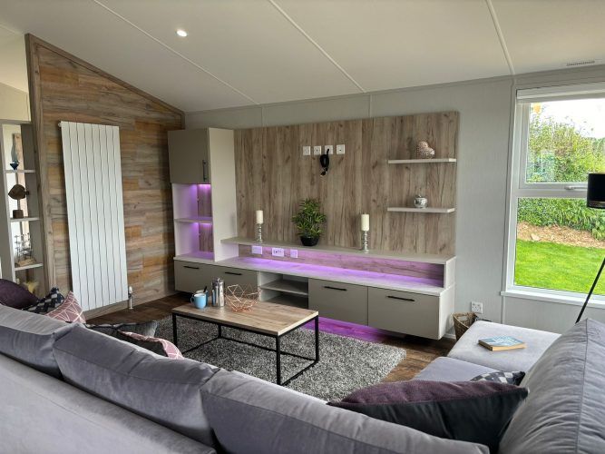 Modern, spacious, and packed full of the latest mod cons, the Mapleton was designed for those who love a bit of tech in their holiday home. The Mapleton is a sleek and stylish retreat in which you can make memories that last a lifetime. It’s soft grey colour scheme is complimented by fresh lavender accents making the lodge a calming space to holiday. Relax in the open plan lounge with its media wall and atmospheric mood lighting – ideal for enjoying the latest blockbuster.