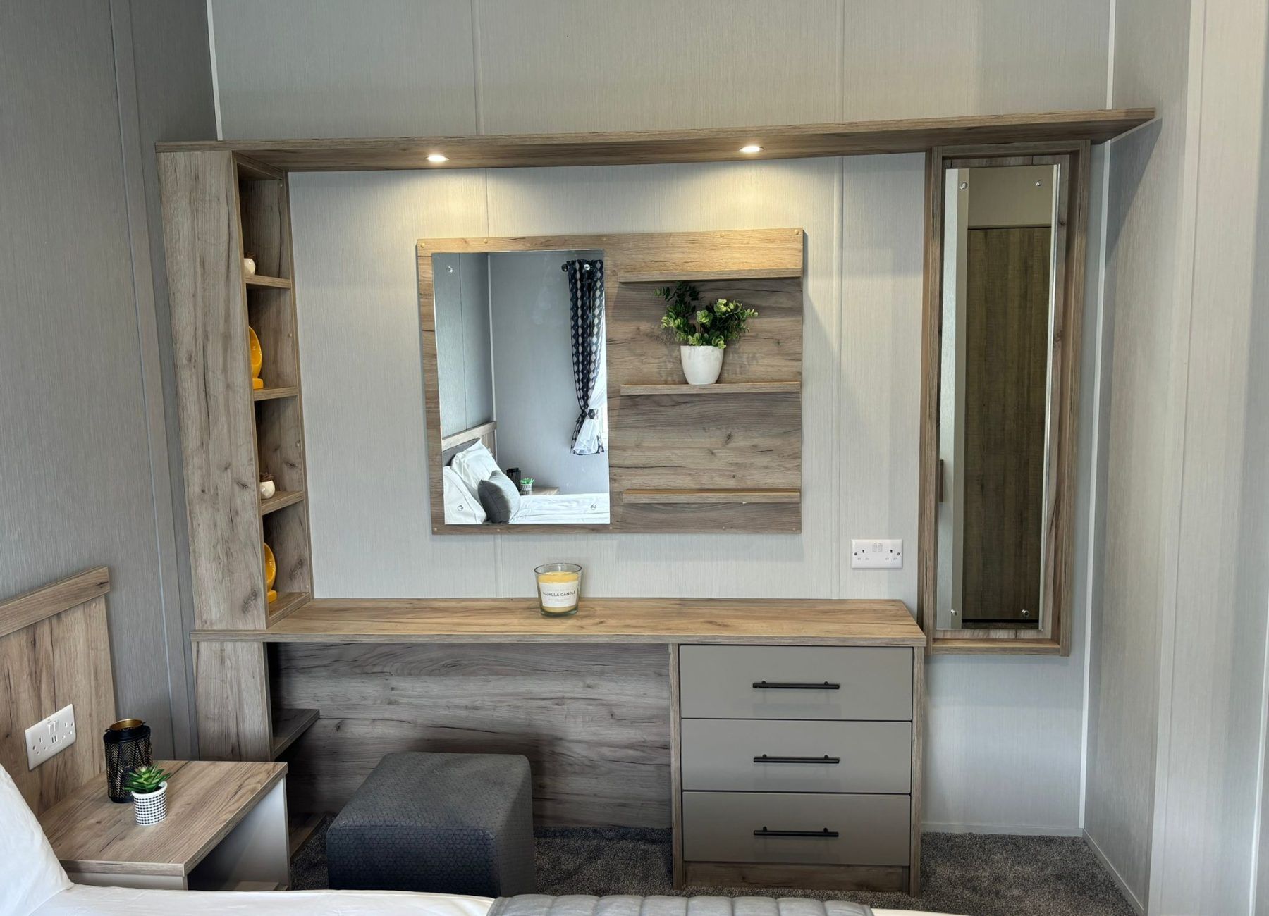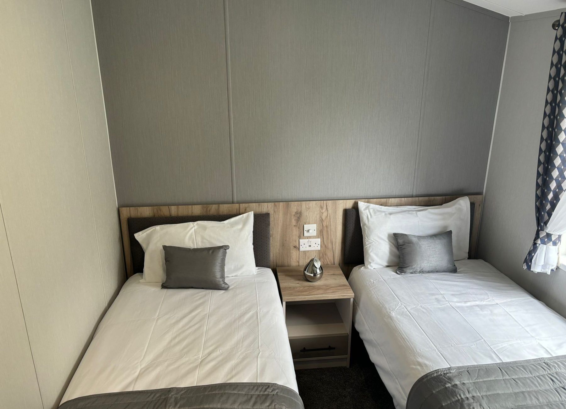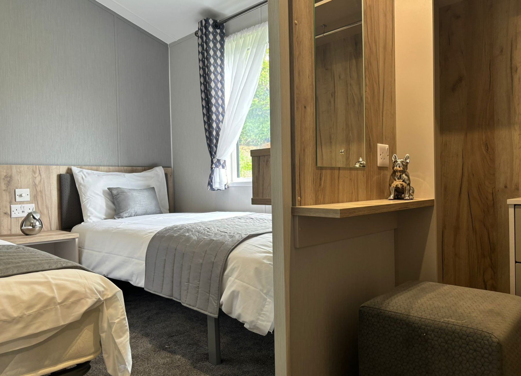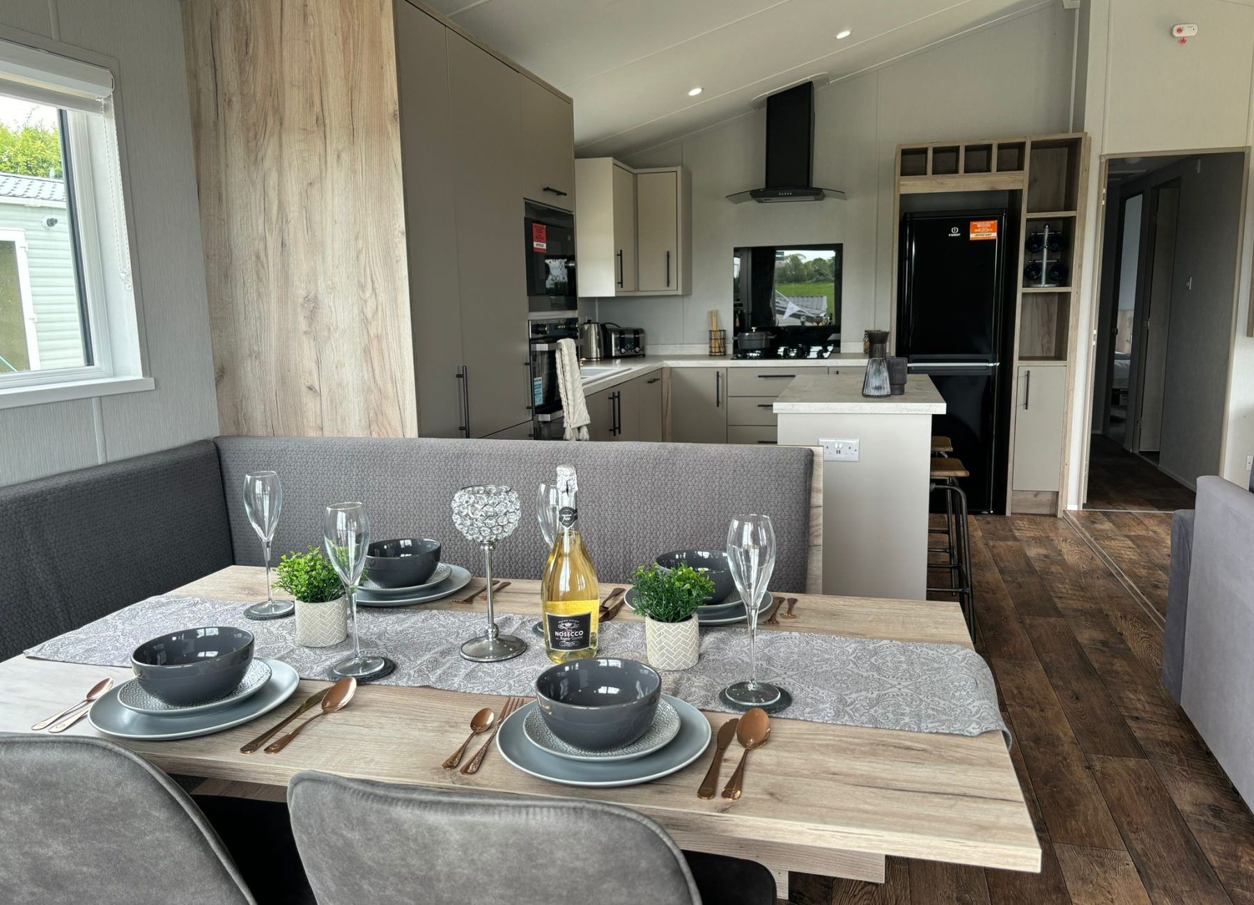 Modern, spacious, and packed full of the latest mod cons, the Mapleton was designed for those who love a bit of tech in their holiday home. The Mapleton is a sleek and stylish retreat in which you can make memories that last a lifetime. It’s soft grey colour scheme is complimented by fresh lavender accents making the lodge a calming space to holiday. Relax in the open plan lounge with its media wall and atmospheric mood lighting – ideal for enjoying the latest blockbuster.