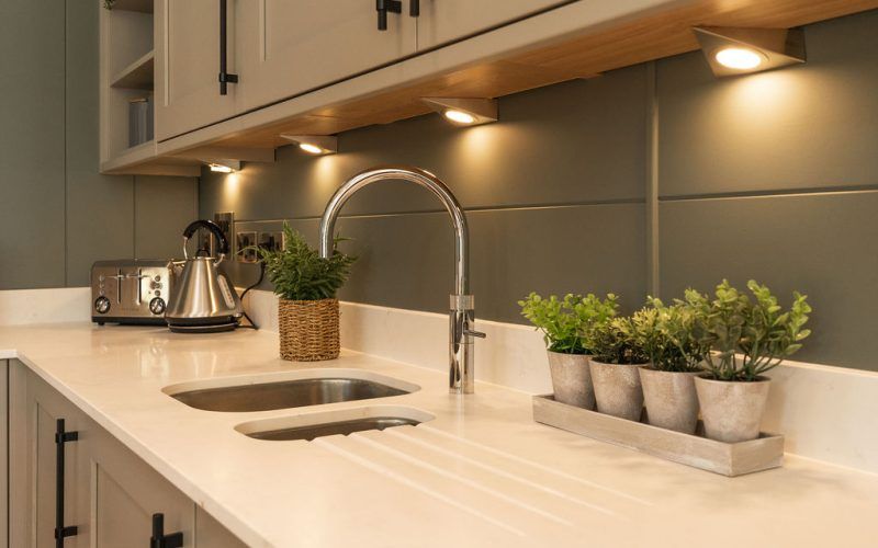- Contemporary white kitchen units